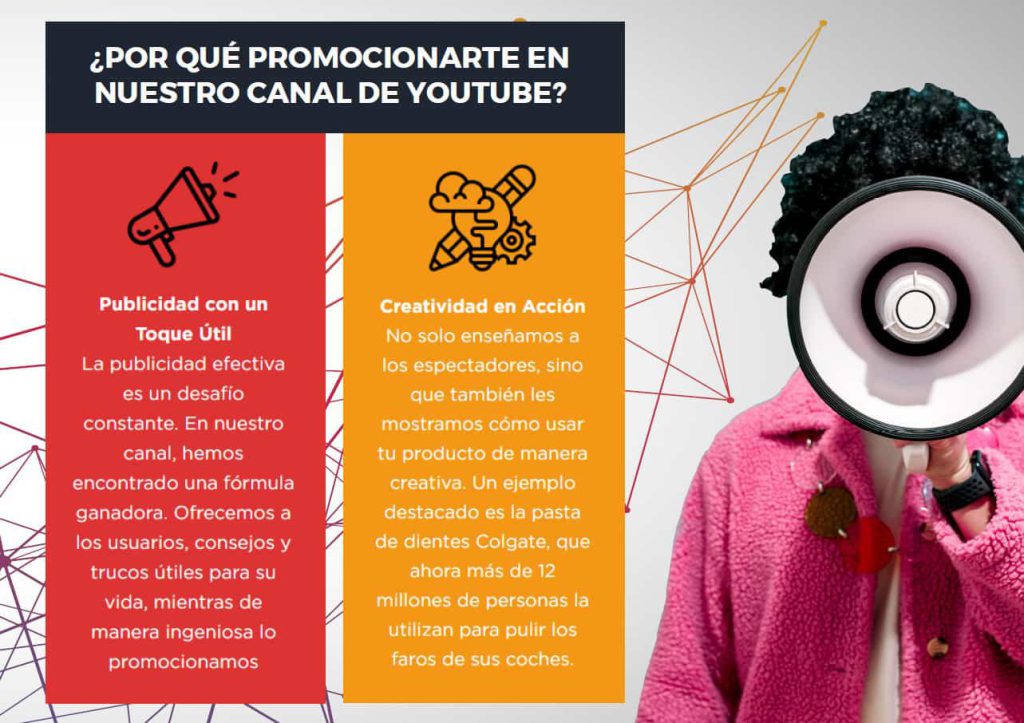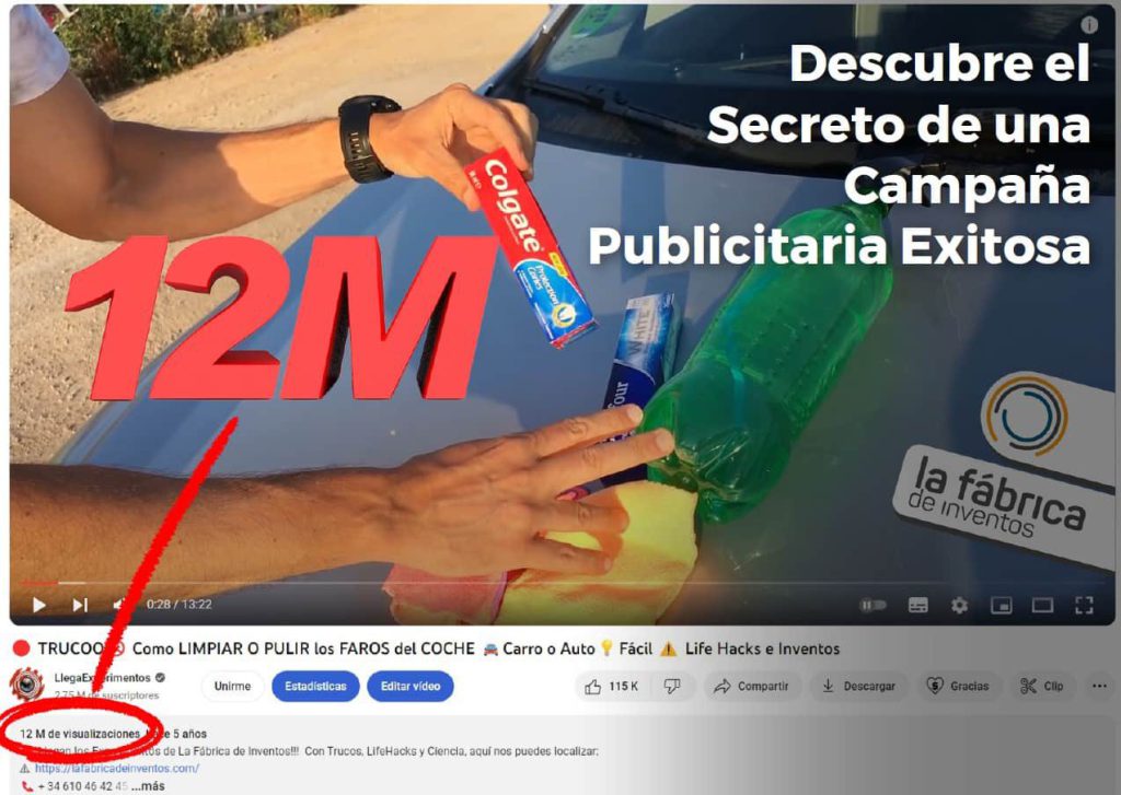 Promocionamos productos al mostrarles a los espectadores formas creativas e innovadoras de usarlos. Por ejemplo, hemos logrado que la pasta de dientes Colgate sea utilizada por más de 12 millones de personas para pulir los faros de sus coches.