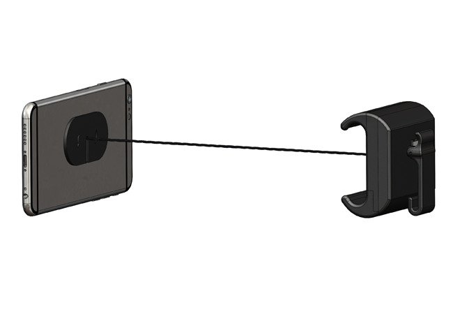 Va sujetado al cinturón n una pieza de seguridad anti-tirones, por lo que puede ser utilizado por todas las personas que utilicen cinturón.